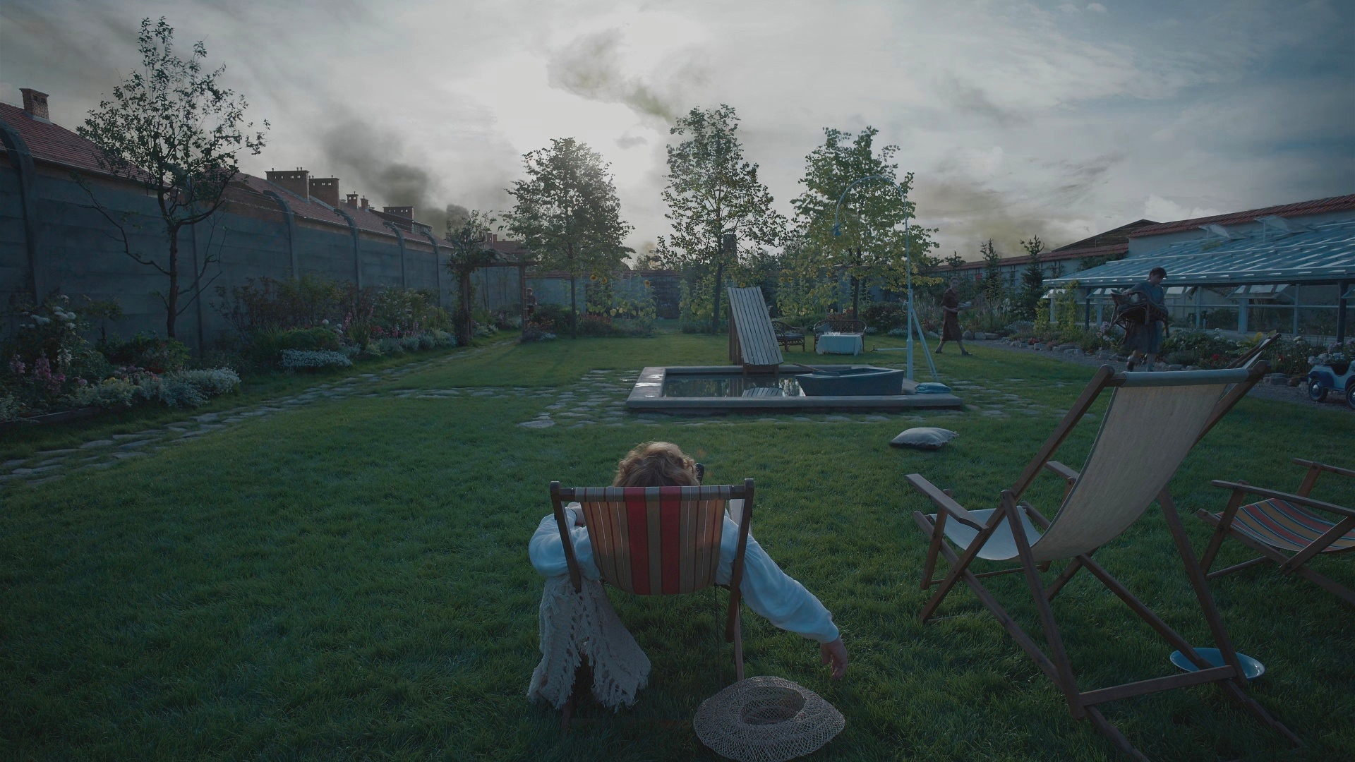 В этом райском уголке, за стеной которого днём и ночью раздаются крики и непрерывно работает крематорий, растут пятеро детей Хёссов, сюда приходят гости и коллеги, здесь пара планирует своё будущее…