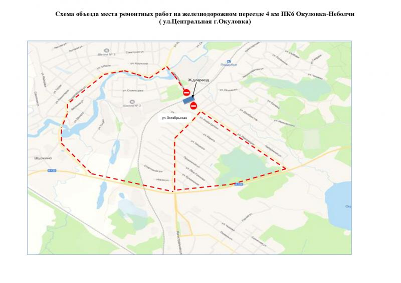 На время производства работ железнодорожный переезд 4 км 6 ПК направления Окуловка-Неболчи автодороги ул. Центральная г.Окуловка будет закрыт для всех видов автотранспорта. Объезд железнодорожного переезда возможно осуществить по улицам Октябрьская, Парфенова, Пролетарская, автодороги А-122.