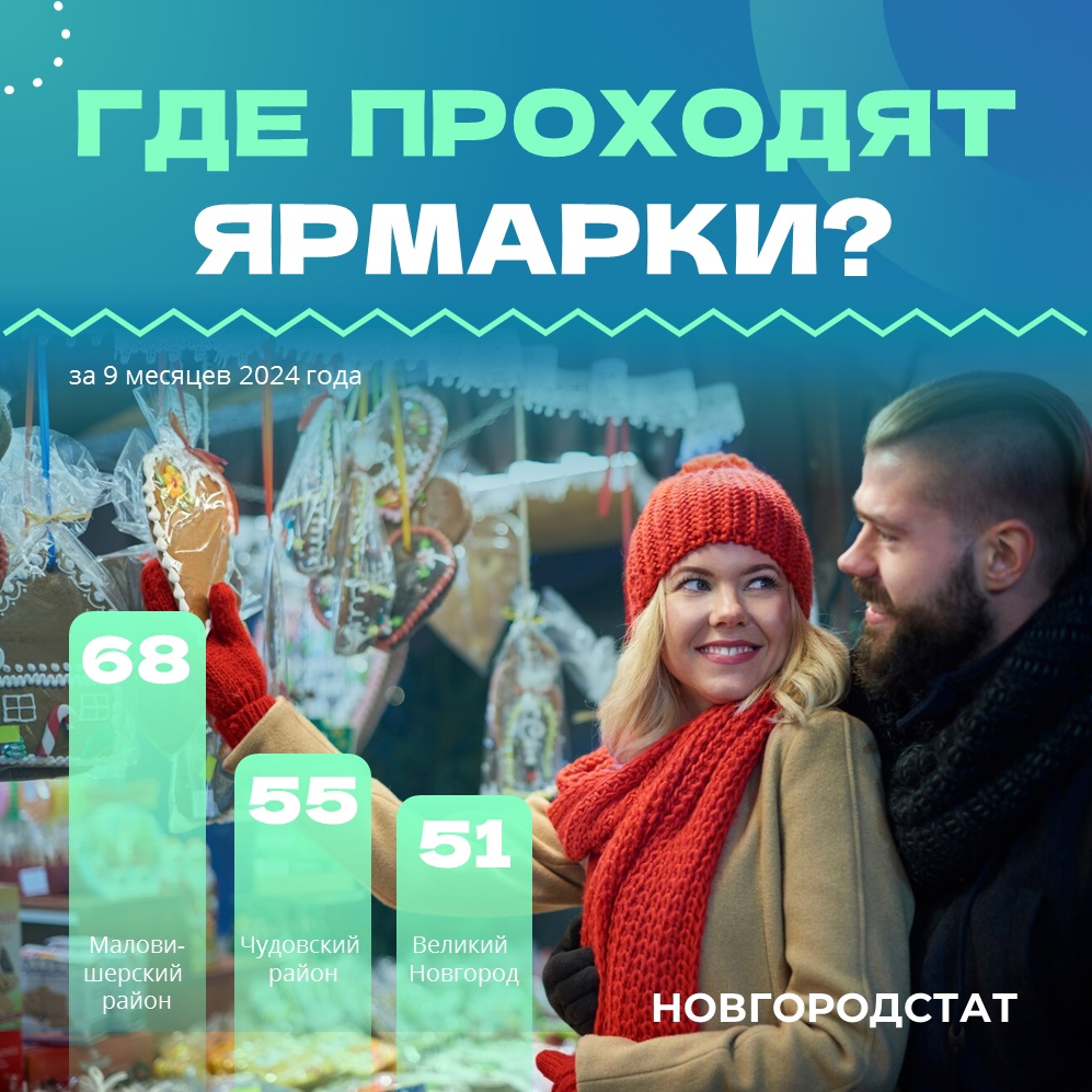 По данным Новгородстата, за девять месяцев 2024 года в Новгородской области было проведено 477 ярмарок, из которых 225 универсальных. Лидером по количеству ярмарок стал Маловишерский район, где активно развивается торговая инфраструктура.