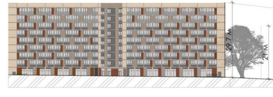 Под жилой дом потребуется вырыть котлован максимальной глубиной 4 метра. Строительство будут выполнять башенным краном на рельсовом ходу.