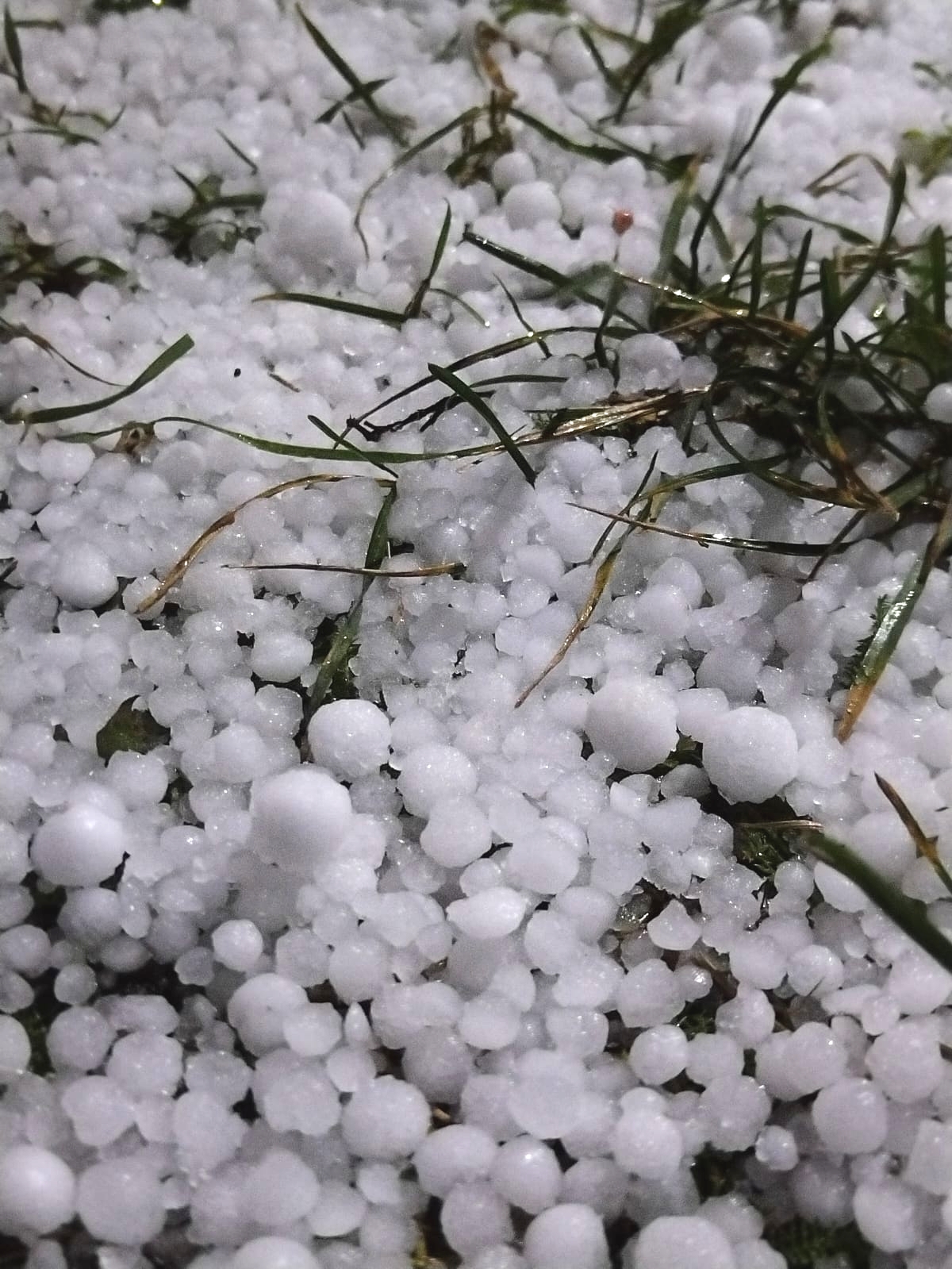 Град оказался настолько крупным, что жителю деревни Шолохово Новгородского района Сергею Суфтину даже удалось слепить из него снеговика.