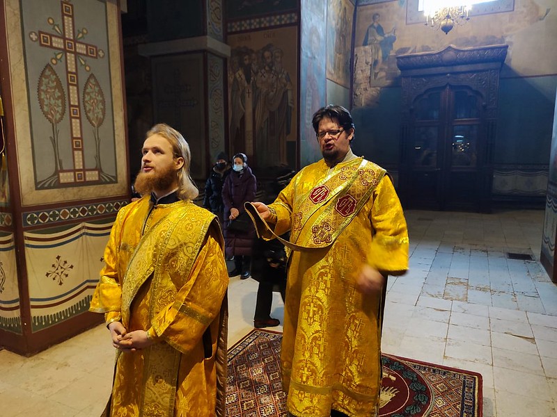 Его Преосвященству сослужили клирики собора протоиерей Алексий Судоса, иерей Николай Полозов, иерей Михаил Ершов, иерей Феодор Середа. Богослужение сопровождалось пением мужского хора Софийского собора под управлением регента Натальи Паплевка.