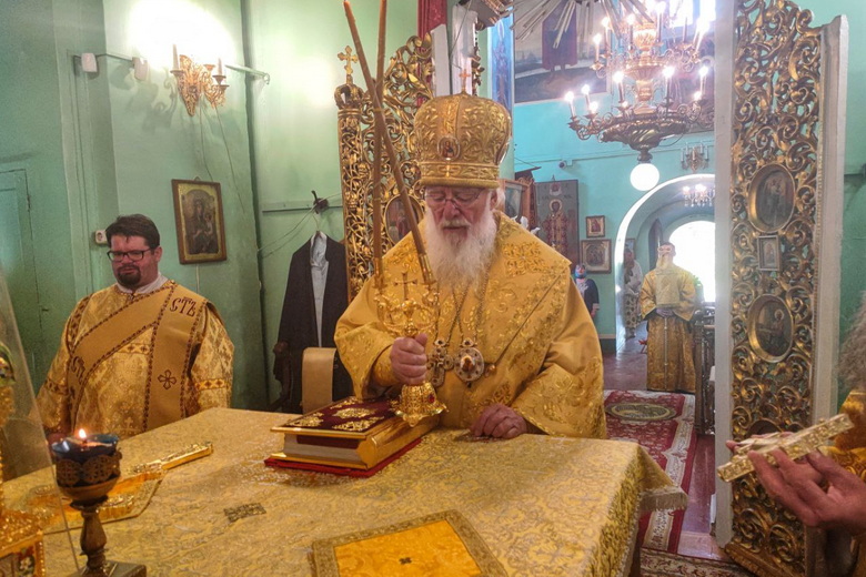 Его Высокопреосвященству сослужили архимандрит Митрофан (Письменский), иерей Владислав Митрофанов, иерей Николай Полозов.