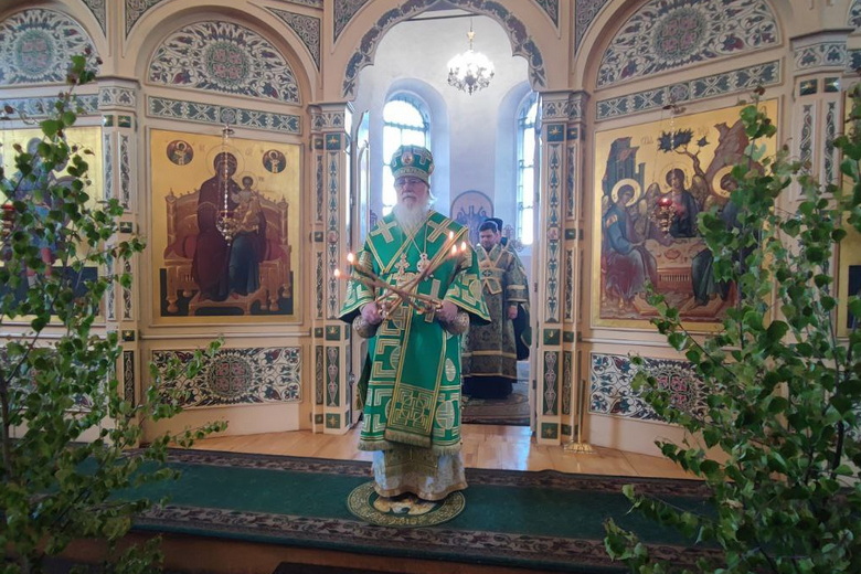 3 июня 2023 года, в канун праздника Святой Троицы, митрополит Лев совершил всенощное бдение в церкви Святой Троицы поселка Крестцы.