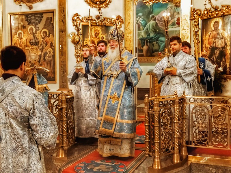 Его Высокопреосвященству сослужили настоятель Покровского собора протоиерей Игорь Беловенцев, штатные клирики собора: иерей Александр Круглов, иерей Дмитрий Квачантиратзе, штатный клирик Софийского собора иерей Николай Полозов.