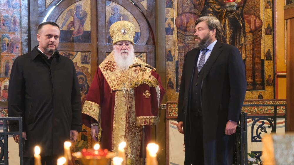 © novreg.ruПо территории Новгородского кремля прошел крестный ход, затем в Святой Софии состоялся торжественный молебен. Вместе с новгородцами в нем также приняли участие губернатор Андрей Никитин и зампредседателя Всемирного Русского народного собора Константин Малофеев. Митрополит Новгородский и Старорусский Лев возглавил молебен и зачитал новгородцам первосвятительское послание Патриарха Кирилла.