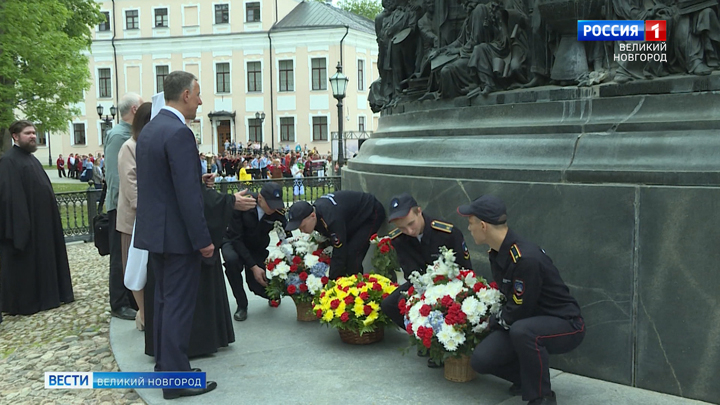 24 мая - праздник одновременно церковный и светский. Но прежде всего (с 1863-его года) - День памяти святых равноапостольных Кирилла и Мефодия. Почему их называют "равноапостольнными" новгородцам объяснили еще во время литургии в Софийском соборе: братья потрудились для людей не меньше, чем апостолы - ученики Христа. В День славянской письменности и культуры после праздничной службы Крестный ход идет логичным маршрутом - к памятнику Тысячелетию России. Там, в ряду просветителей, конечно, и создатели азбуки для славян.