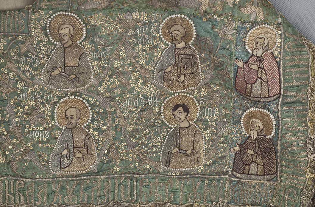 С 27 января во Владычной (Грановитой) палате в Новгородском Кремле начала работу выставка «Шедевры древнерусского шитья. Богослужебные облачения с образами новгородских владык». На выставке демонстрируются два уникальных памятника древнерусского лицевого шитья середины XVII столетия.