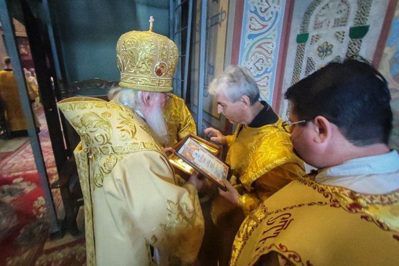 Награждение состоялось в Софийском соборе во время Божественной литургии, которую в этот день совершил митрополит Лев.