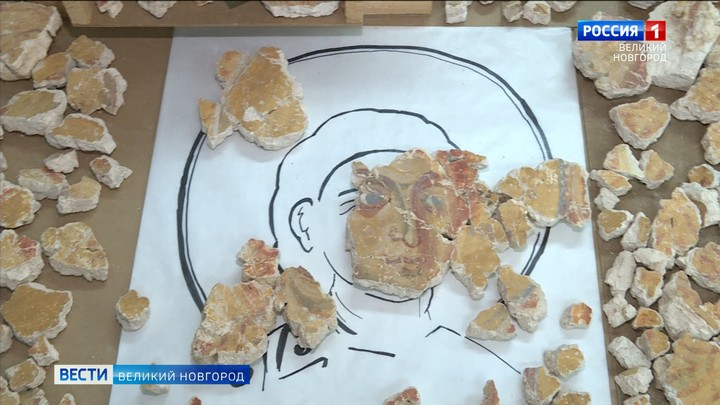 В Центре реставрации монументальной живописи Новгородского музея-заповедника продолжается работа по подборке фрагментов фресок церкви Благовещения на Городище - утраченного храма 12-го века. Красивую по цвету живопись специалисты заметили сразу, как и то, что у всех ликов - голубые глаза. Такого реставраторы ещё не встречали, обычно, собирая фрагменты, они видели чёрные.