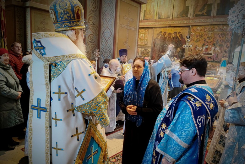 Награждение состоялось в Софийском соборе на малом входе Божественной литургии, которую в этот день совершил митрополит Лев.