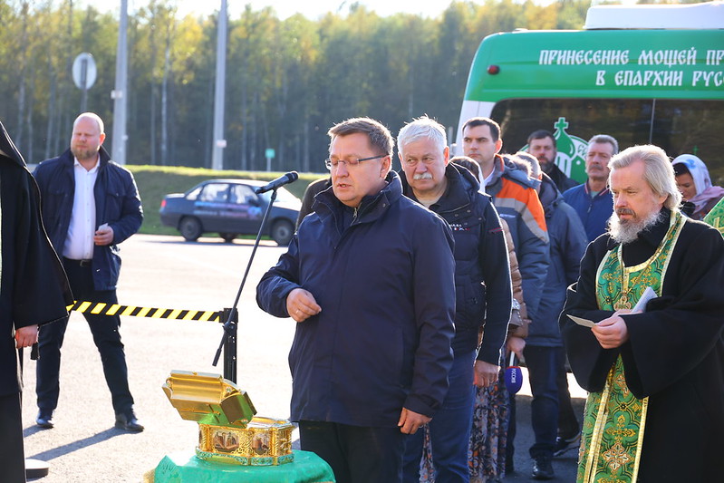 Во встрече мощей приняли участие председатель правления госкомпании «Автодор» Вячеслав Петушенко, заместитель председателя Правительства Новгородской области Елена Кирилова и другие.