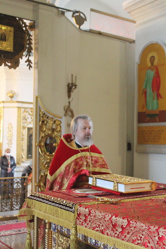 Богослужение возглавил председатель Епархиального отдела по взаимодействию с Вооружёнными Силами и правоохранительными учреждениями, настоятель Покровского собора протоиерей Игорь Беловенцев.