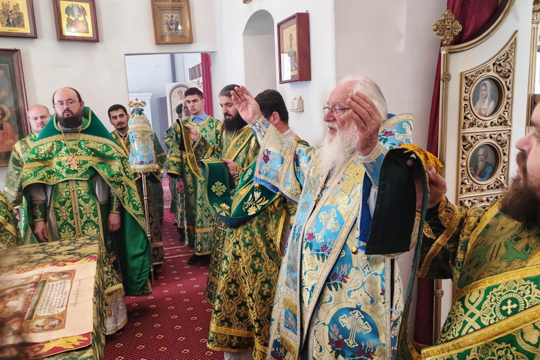 Его Высокопреосвященству сослужили наместник Антониево-Леохновского монастыря архимандрит Митрофан (Письменский); насельник монастыря игумен Арсений (Гавура), протоиерей Николай Епишев, иерей Николай Полозов.
