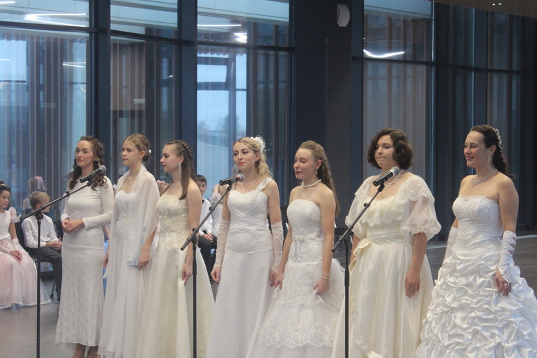 Открыл праздник образцовый ансамбль бального танца «Новация». Старшие участники бала исполнили полонез, шапеллуаз, вальс Людовика XIV, русский лирический танец и даже «модный рок». Младшие ребята танцевали краковяк, вальс знакомств, кадриль и менуэт. Вальс также исполнили педагоги Воскресной школы Покровского собора. Гости бала смогли поучаствовать в танцах «ручеек», «полька-тройка», «сиртаки».