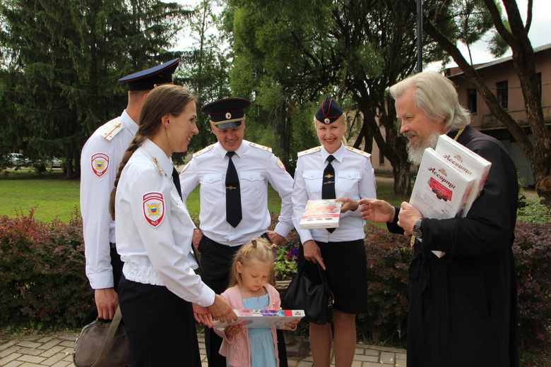 Затем отец Игорь вручил сладкие подарки детям сотрудников УМВД.