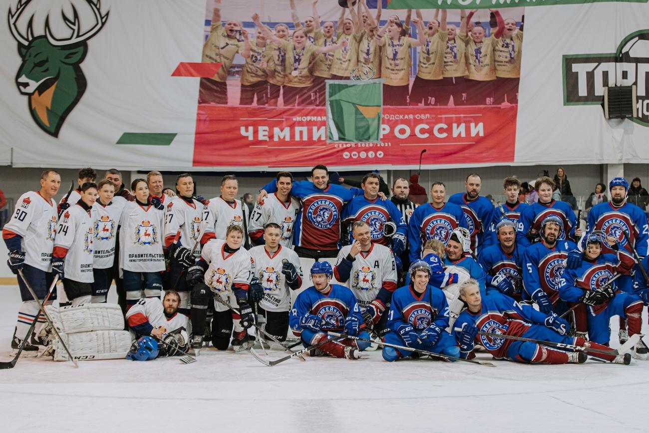 Праздничный матч состоялся в рамках Городецкого кинофестиваля им. св. Александра Невского. За «Хоккейных пап» играли звезды одноименного фильма - Алексей Бардуков, Андрей Феськов, Сергей Перегудов, Даниил Вахрушев, а также сам режиссер Андрей Булатов и юные актеры картины.