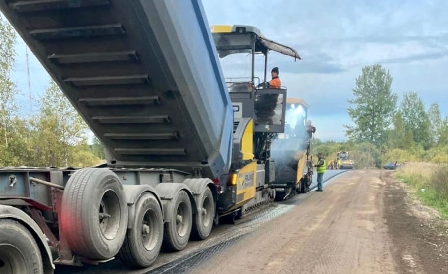 Подрядчик приступил к устройству верхнего слоя асфальтобетонного покрытия на дороге Залучье — Пинаевы Горки — Ляховичи в Старорусском районе.