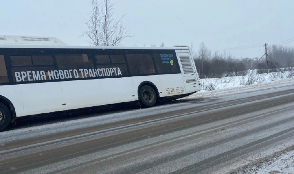 Городской автобус, следовавший по маршруту 7А, попал в снежный занос по дороге в Юрьево.