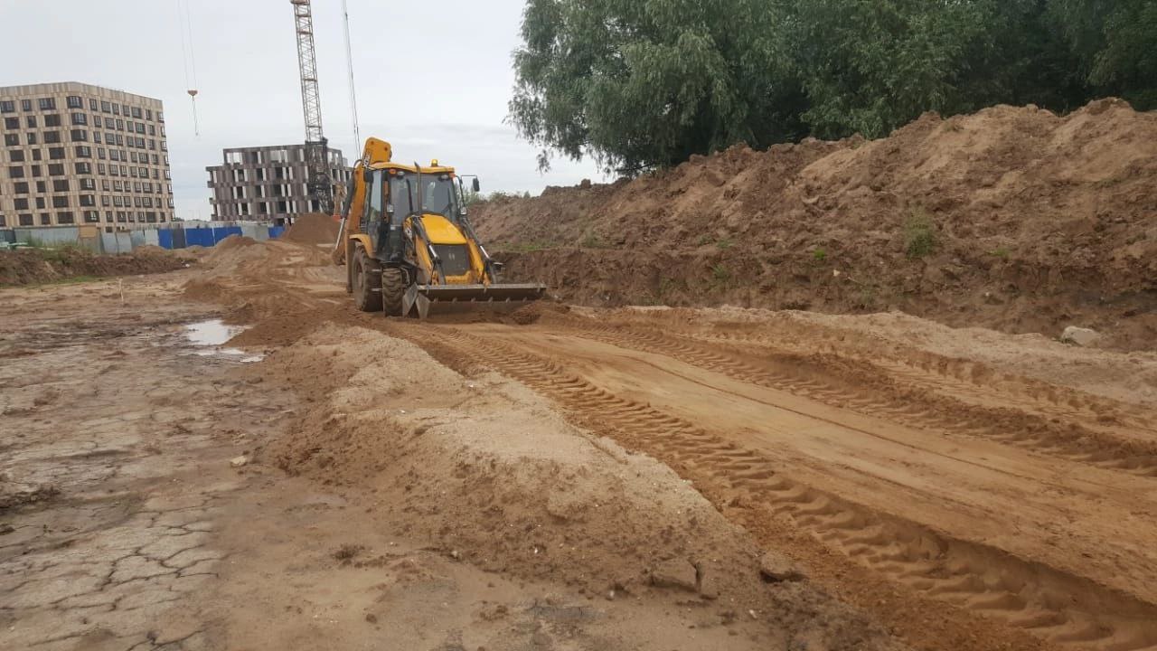© Владимир ЕрёминПодрядчик вышел на объект и ведет обустройство корыта и насыпи дорожного полотна. Также монтируют ливневую канализацию и люки. Кроме проезжей части здесь будут построены тротуары, велодорожка, установлено наружное освещение.