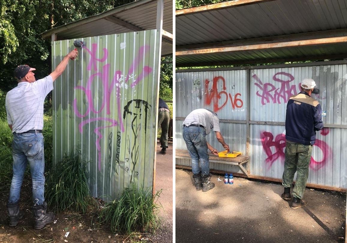 В деревне Юрьево и на Драгунском шоссе покрасили автобусные остановки
