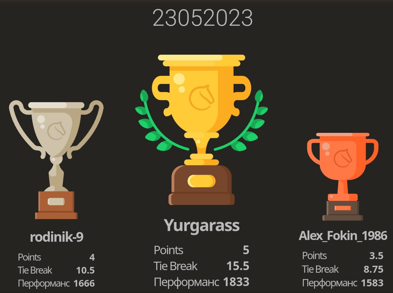 Шахматный турнир проходил на электронной площадке сайта lichess.org по швейцарской системе в 6 туров.По итогам игры наибольшее количество очков набрал младший инспектор группы надзора отдела безопасности КП-6 Юрий Гарас, серебряным призёром стал младший инспектор отдела охраны ИК-9 Александр Родин, а бронзу по общему баллу завоевал оперативный дежурный дежурной части Отдела по конвоированию Алексей Фокин. Поздравляем всех участников соревнований и желаем победы в следующем этапе Юрию Гарасу.