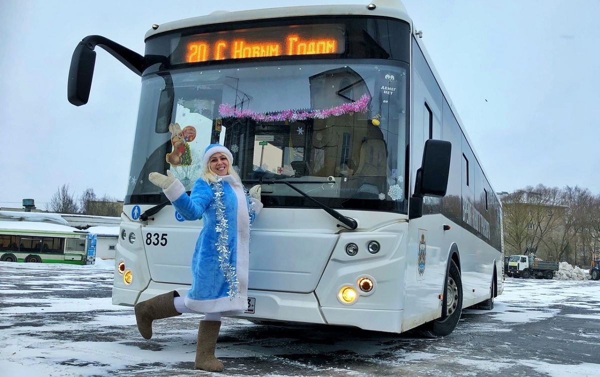 Новгородцы заметили, что одним из автобусов предприятия-перевозчика АО «Автобусный парк» управляет Снегурочка.