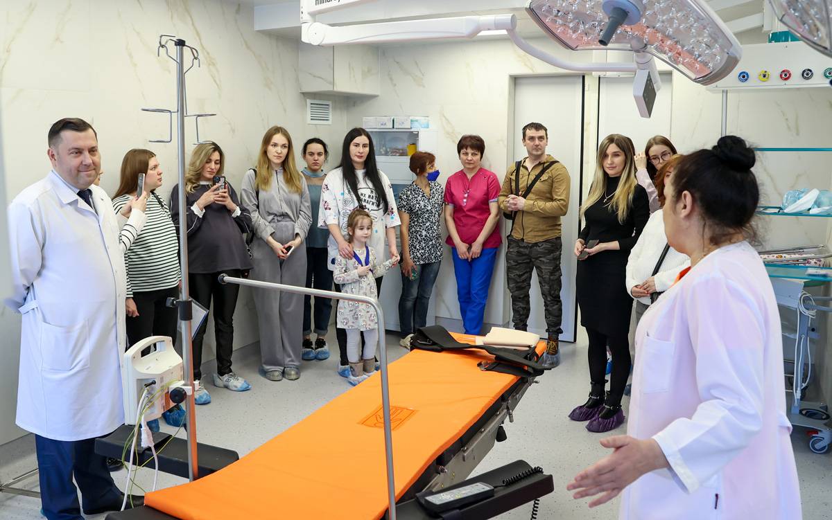 Будущим мамам и папам показали современные комфортные палаты, оборудованные многофункциональными койками, пеленальными столиками и кроватками для новорожденных. В отделении планируется ведение партнёрских родов и совместное пребывание мамы и малыша. Полностью оборудован операционный блок, родильный зал, палаты интенсивной терапии, как для рожениц, так и для новорождённых.