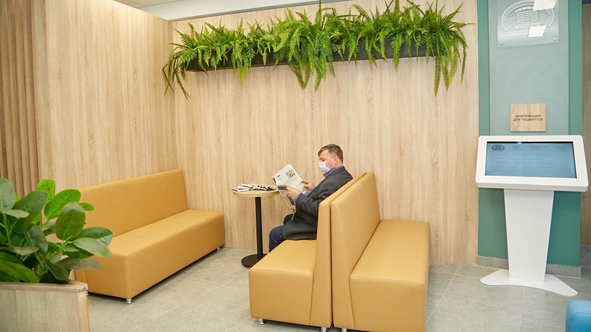В отремонтированных помещениях удобно для пациентов разместили гардероб, стойку администратора, регистратуру и зоны ожидания. На административной стойке работает сотрудник МФЦ в рамках регионального проекта «Вежливая регистратура». Он встречает пациентов и консультирует их по вопросам записи к специалистам и логистике перемещений по больнице.