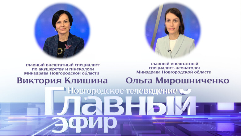 В студии «Главного эфира» – Виктория Клишина, главный внештатный специалист по акушерству и гинекологи Минздрава Новгородской области и Ольга Мирошниченко, главный внештатный специалист-неонатолог Минздрава Новгородской области.