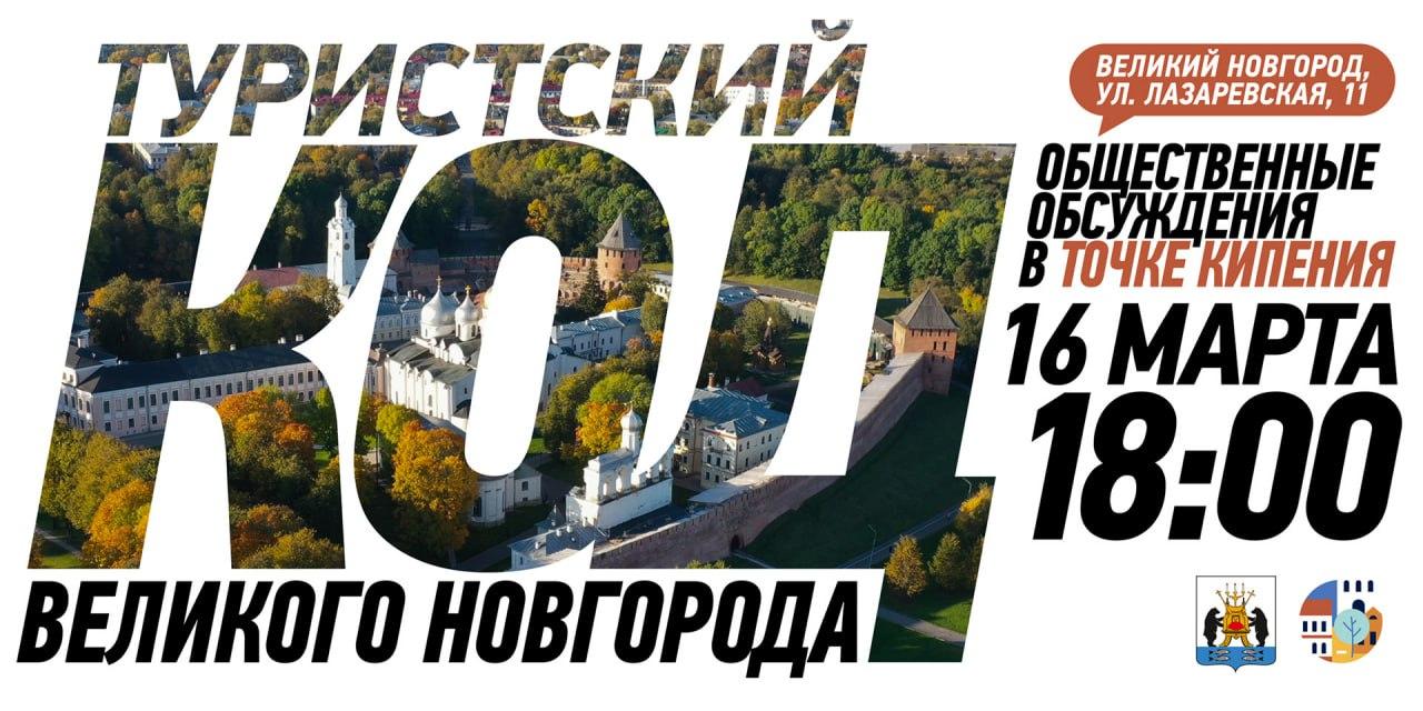 16 марта 2023 г. в 18:00 в Точке кипения (Лазаревская ул., д. 11) Администрация Великого Новгорода и Центр развития городской среды Новгородской области представят предварительную концепцию Туристского кода Великого Новгорода, разработанную совместно с историками, археологами, краеведами и специалистами по туризму. Участие примут заместитель Главы администрации Великого Новгорода Сергей Пенязь, руководители профильных комитетов Администрции Великого Новгорода.